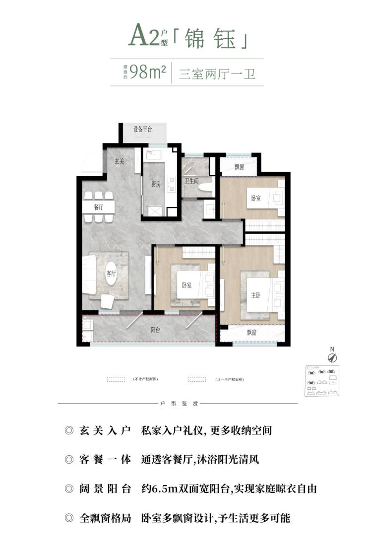 在售户型:建面约98㎡(三室两厅一卫)、107㎡(三室两厅两卫)、132㎡(四室两厅两卫)