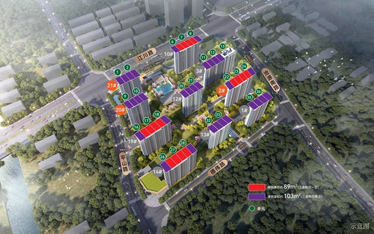 主力户型:89㎡三房一卫、103㎡三房双卫,无120㎡以上大户型,专注“小户型豪宅化”;