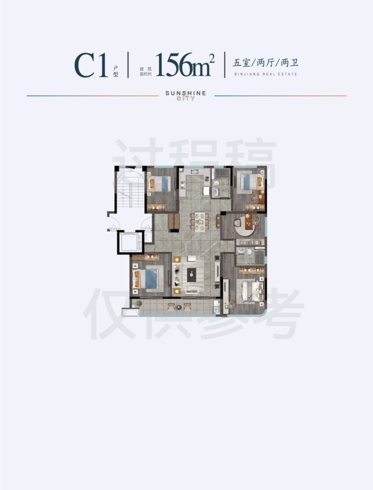 主力户型:项目户型南北通透、全明舒适,打造建面约89方三房两卫、131方四房两卫、156方五房两卫、212方排屋