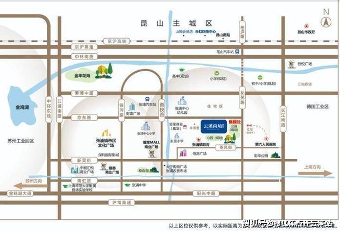 【区位价值】——— 张浦镇,位于市版图中心,东邻上海、西依苏州、北接昆山中心城区、南接昆山旅游度假区,市长三角对外开放的重要城镇之一,镇域面积109平公里,常驻人口23万,下属13个社区、15个行政村。