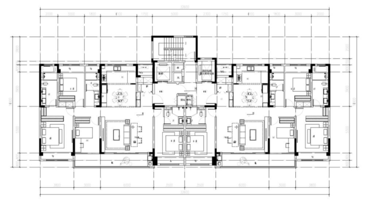 155户型也是2梯2户设计,做了4房2厅2卫。户型格局与183户型差别不大,相当于是缩小版。南向面宽14.9米,客厅开间5米,阳台宽8米。