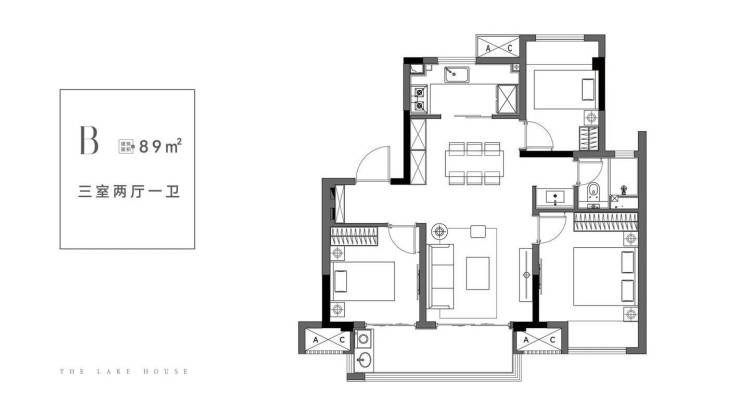 99-109㎡三居:南向双阳台,部分户型带独立玄关