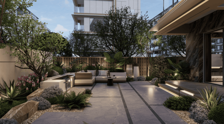 户户配置空中庭院/花园,上叠最大63㎡露台,下叠带40-300㎡庭院及5.2米层高地下室