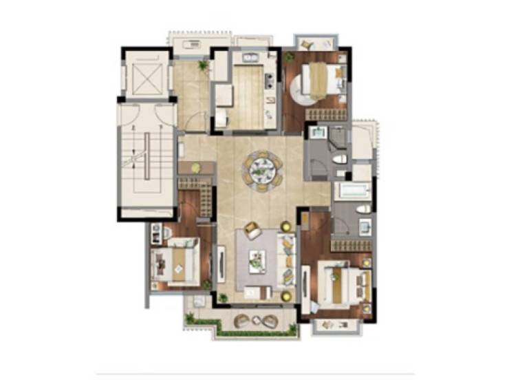 自如 143㎡三室两厅两卫,部分户型赠送露台
