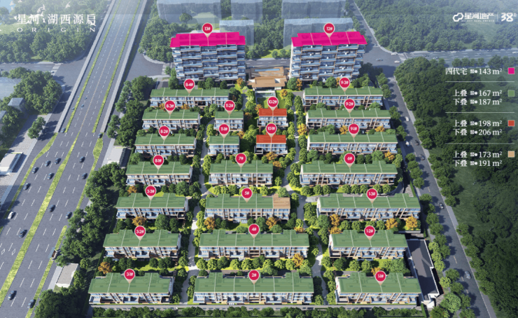 项目以仅1.25的低容积率,规划打造纯粹改善住区。整个社区由22栋4层叠加别墅与2栋11层洋房共筑而成,整体采用“台地上盖”理念,营造出“浮岛墅区”的独特意境。