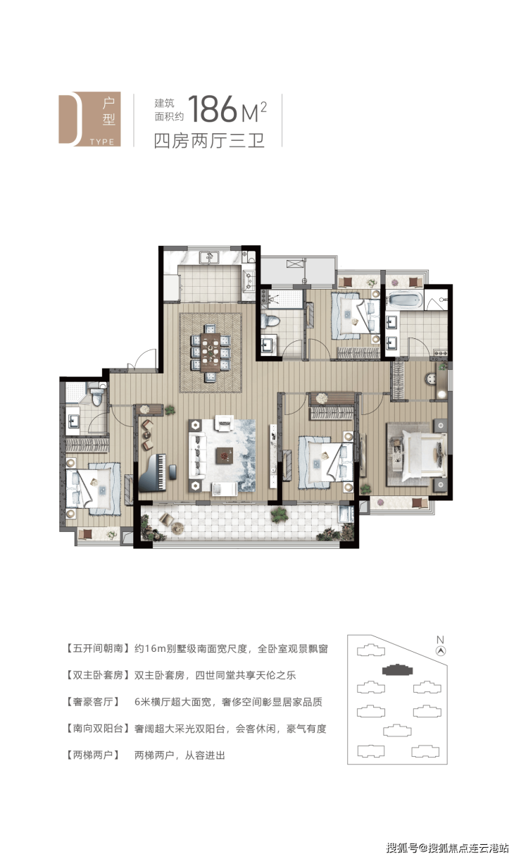 目前主推建面 140㎡、165㎡、186㎡的 4 居户型,满足不同家庭的居住需求。多样的空间设计,无论是二胎家庭还是三代同堂,都能找到理想居所。