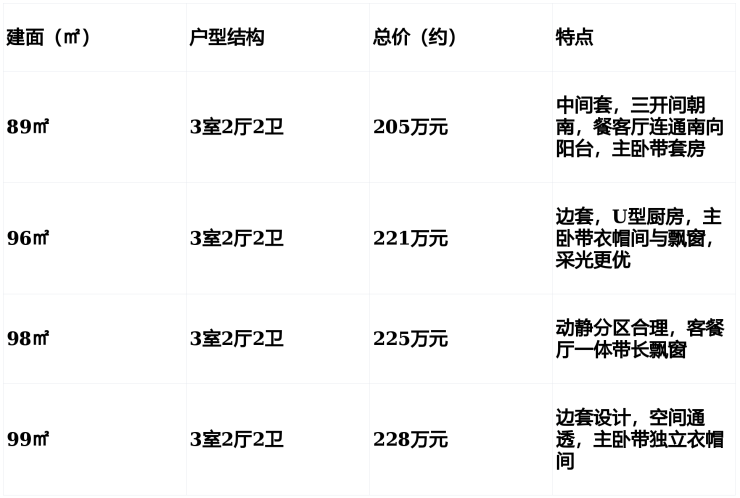 总价区间:199万元起,主力户型总价集中在200–240万元级