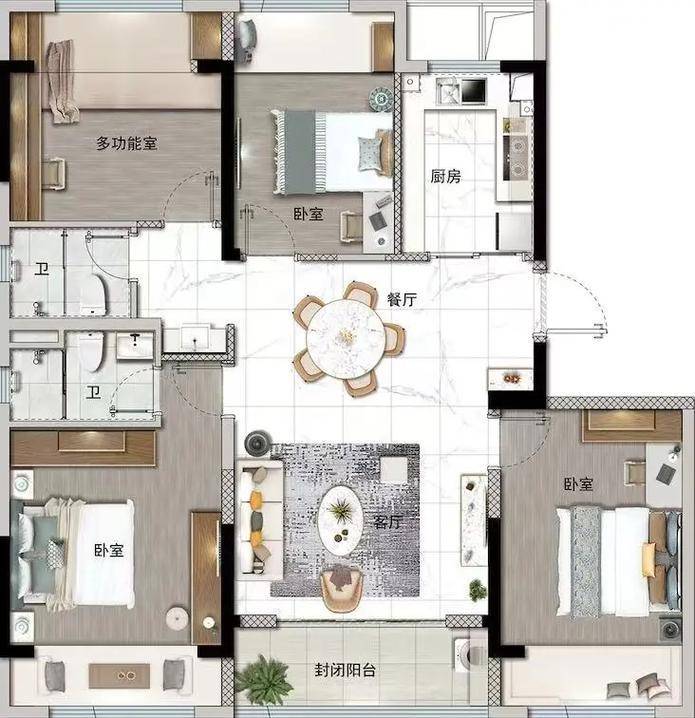 户型优势:主力户型南北通透、全明设计,93㎡户型为集团"三冠王"户型
