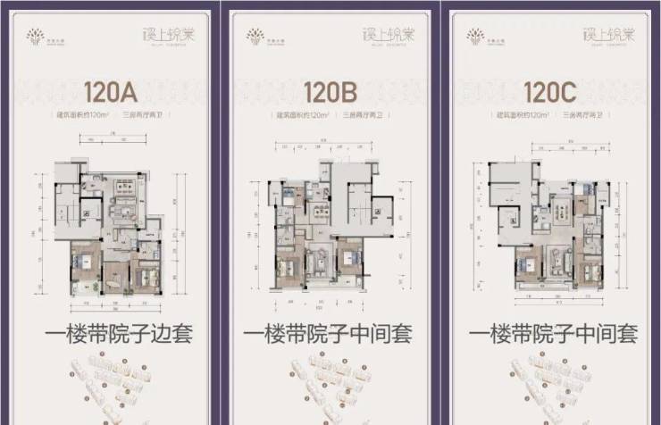 洋房:单价约12000元/㎡,总价109-240万元/套,户型为95-120㎡的二至三居室