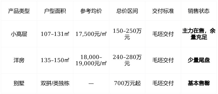交付标准:毛坯交付,但墙体、门窗、水电管线均按高端标准施工,后期改造空间大。