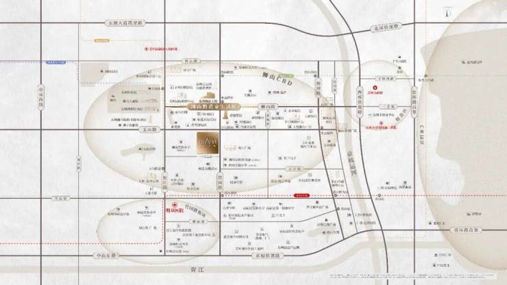 约2.9公里的狮山路,连接着京杭大运河与狮山文化广场,一半狮山一半湖的狮山公园触手可及,狮山龙湖天街、金鹰、淮海街共同交织的生活图景目不暇接,苏州博物馆(西馆)、狮山大剧院等林立的文化艺术原址挥洒着当代松弛栖居的人居理想。