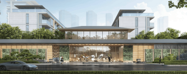 叠墅与联排:建面约220-316㎡,大面宽玻璃立面+顶部延伸露台,毛坯交付,满足个性化改造需求。
