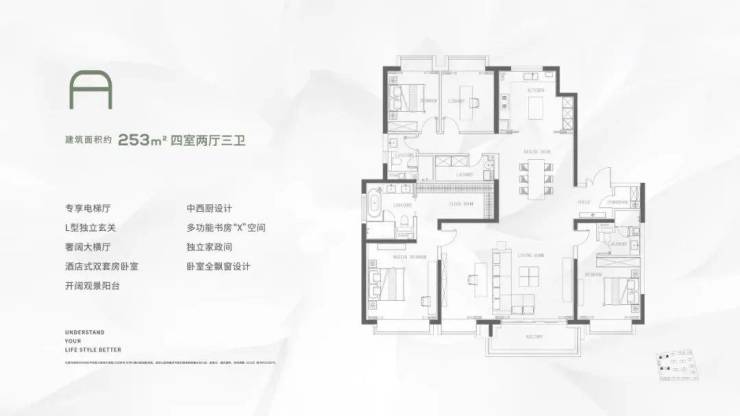 253㎡4房2厅4卫:层高3.3米,纵向双厅布局