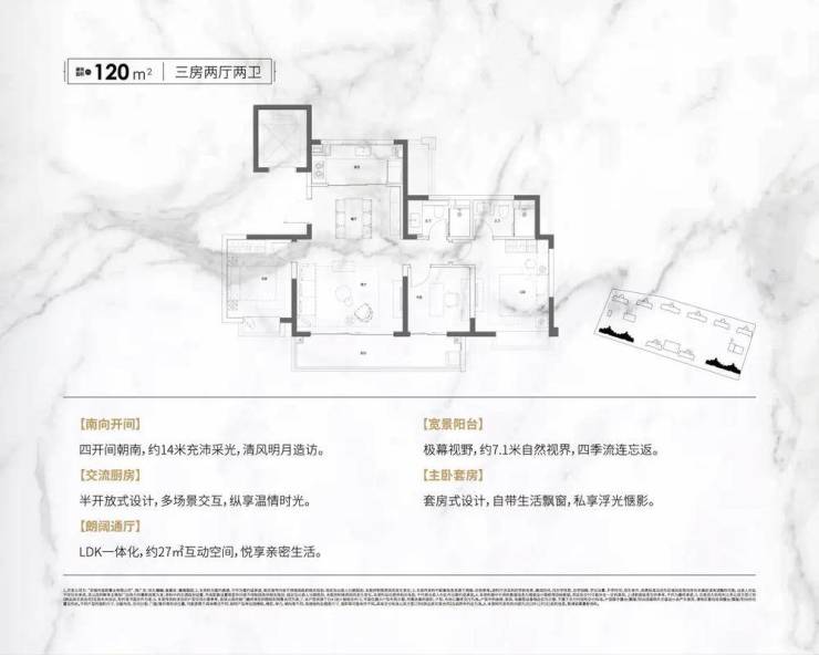 建面约120㎡三房:总价266万-270万(2梯2户)