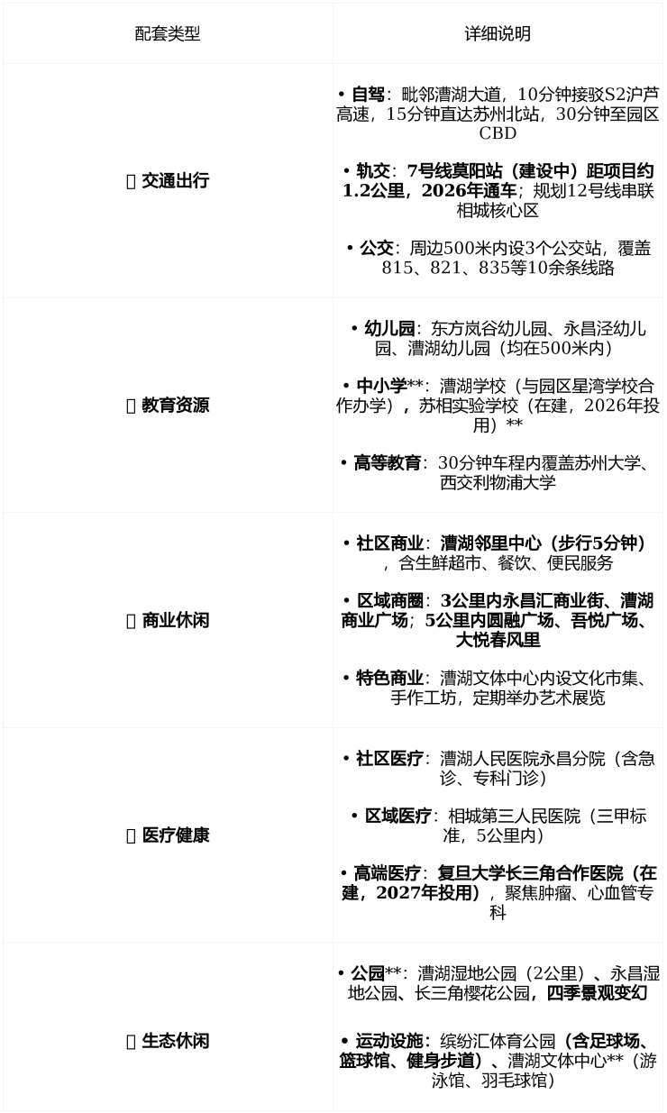 核心优势 **:苏相合作区首个6–8层低密洋房社区** + 三大国企联合开发 + 精装交付含中央空调+新风系统 + 对口漕湖学校(星湾合作办学) + 15分钟生活圈覆盖商业、医疗、生态 + 轨交7号线2026年通车