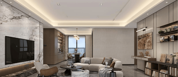 四、 LDKBG五维交互的生长力。在客厅/餐厅/厨房/阳台/空中花园一体化的空间基础上,创新性加入空中花园维度,形成“动区互联+生态渗透”的五维交互体系。通过洄游动线设计,让五大空间形成有机整体,既保持功能独立性,又能根据生活场景自由重组。
