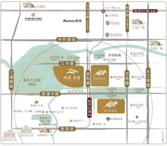地铁 :规划中 S1线(苏州轨交)K1线(昆山轨交) 在玉山广场站换乘,K1线将从项目东侧设站,未来 15分钟直达苏州园区,30分钟抵达上海虹桥
