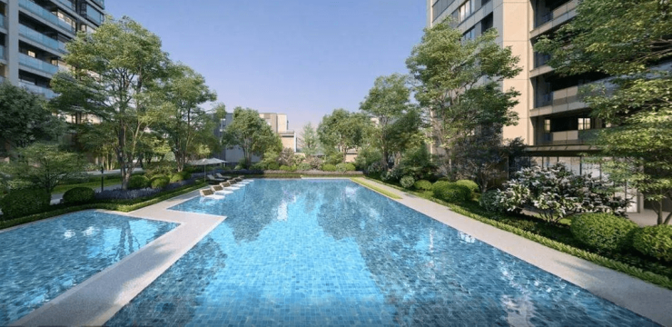 在社区中央打造了会所和高端户外中央泳池,并配备多个更衣室。每栋住宅的1层均打造成全龄化主题架空层,丰富业主的活动空间。