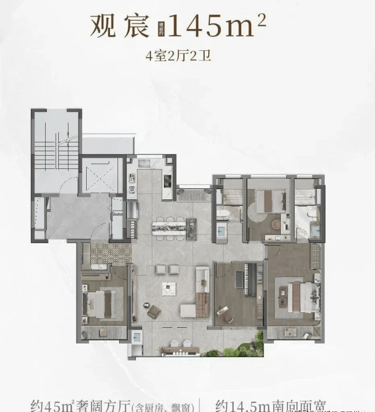业主反馈145㎡样板间设计出色,小区配套完善(含游泳池、健身房等)