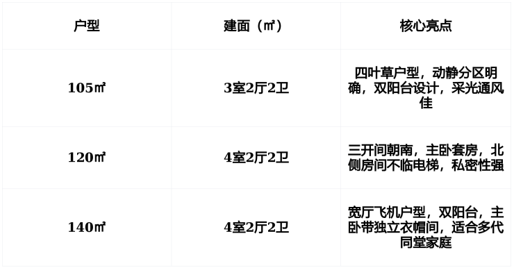 所有户型均实现厨卫全明、南北通透,得房率在同类产品中处于中上水平,尤其适合预算有限但追求功能完整的首次改善家庭。