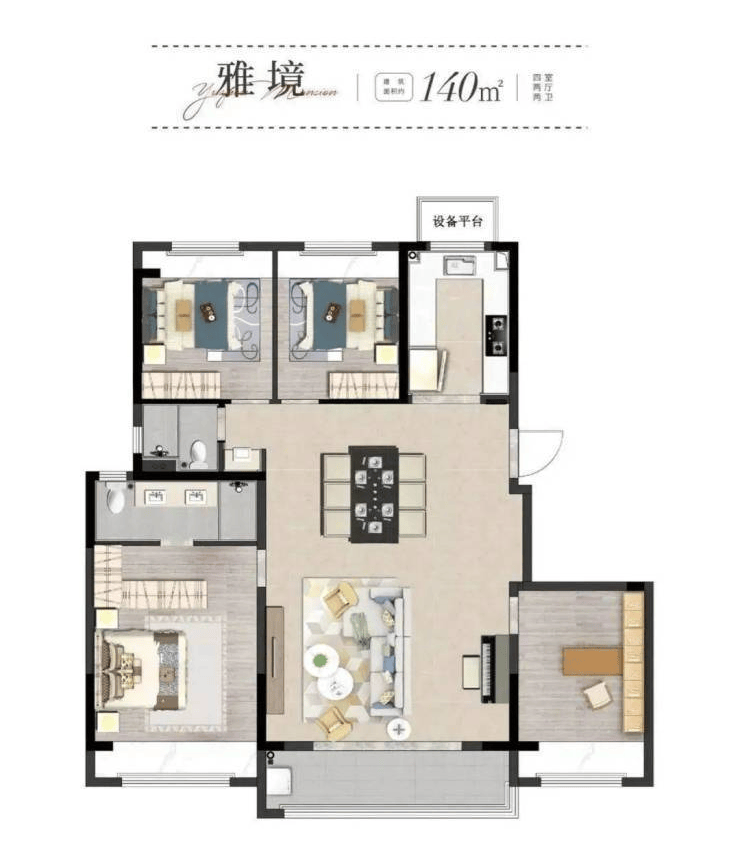 【面积】户型丰富,涵盖105平、120平以及140平多种选择