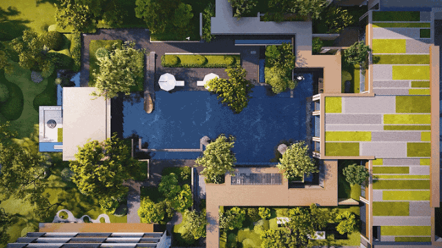 兴耀月琉璃它占地超3.8万㎡,10幢高层围合出2个集中式花园。花园的灵感缪斯,是大名鼎鼎的曼谷湄南河四季酒店。这家被誉为“曼谷最佳很难有之一”的奢牌酒店,以妙到毫巅的水院著称。