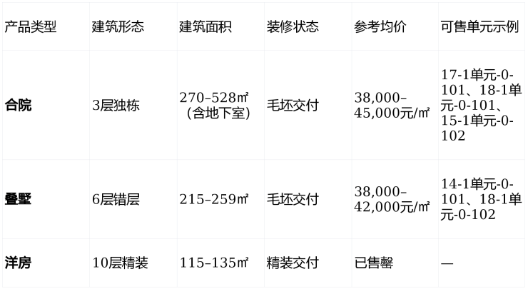 截至2025年12月,项目仍有部分房源在售,主要集中在合院与叠墅产品,洋房已基本售罄。