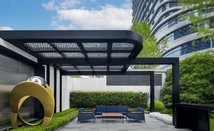 内有酒店式环岛、约23m × 22.7m落客区, 8大景观区(琳琅吧台、星光水幕、林下休闲台等,满足全龄化使用需求)。可以用于商务洽谈、露营、烧烤BBQ、下午茶、生日婚宴专属定制主题派对等等……