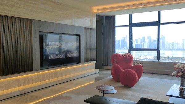 瞰江开间最大可达约28m,这样的尺度配上一整面落地窗,完全是一种在用宽屏巨幕IMAX观影的既视感。