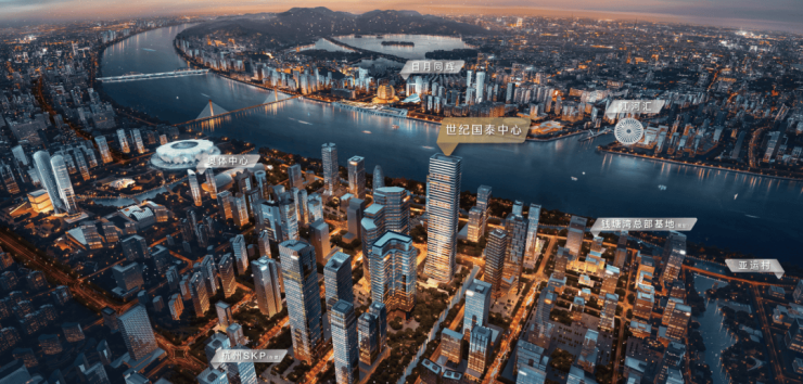 国泰中心游艇风云境外立面,约199米高,是目前杭州一江两岸的九大封面之一。