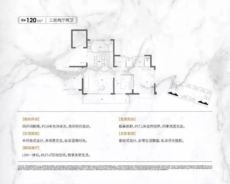 主力户型:建面约110㎡(三房)、120㎡(三房)、138㎡(四房)