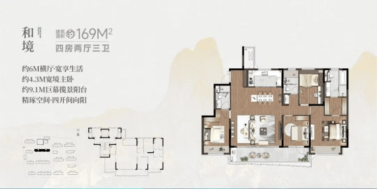 169㎡户型:4室2厅3卫,全明格局,南北通透,总价约565万元