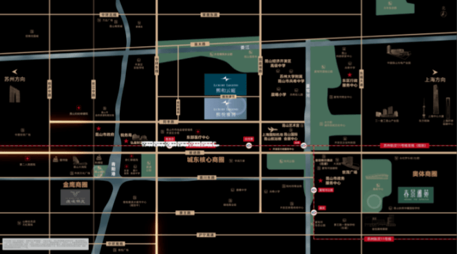 毗邻昆山市政府(城东核心板块),距苏州轨交11号线白河潭站约800米