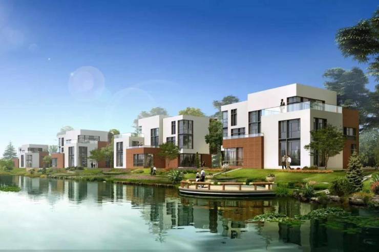 定位:文旅地产,主打亲水原生态居住环境,东临高尔夫球场,西望淀山湖,社区内设七大主题景观及天然水系。