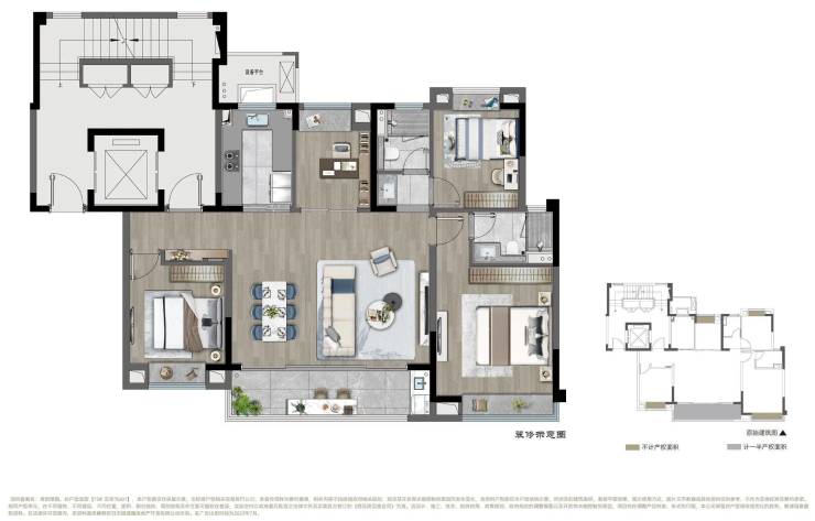 【上叠示意图 建面约145m² 4室2厅3卫】