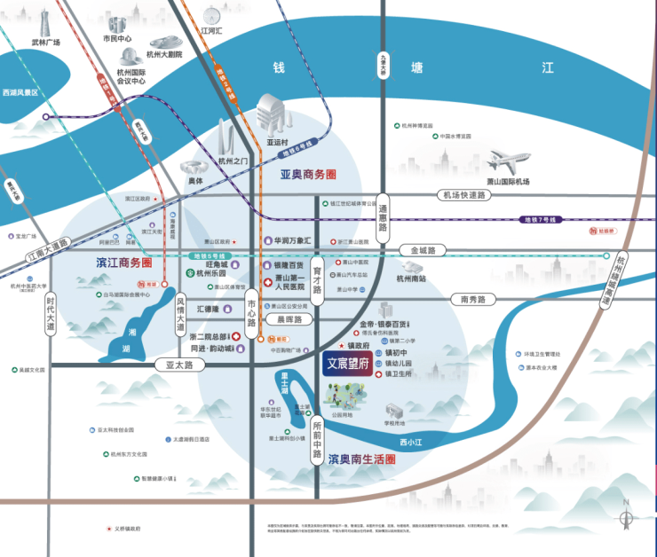 沪昆铁路抬升工程已正式动工,这一举措意义重大。市心路、通惠路、风情大道及时代大道四条黄金主干道将实现无缝贯通,届时能够直接抵达滨奥、钱江新城等核心CBD区域,出行更为便捷高效(信息来源:浙江日报)。此外,项目与地铁2号线朝阳站直线距离约2公里,公共交通出行便利。同时,杭金衢高速、杭州绕城南线以及规划中的杭绍台高速,构建起完善的高速交通网络,让您出行随心,畅行无阻。