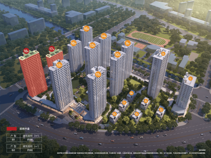 ——产品力:杭派精工匠心力作——在全民喜迎亚运的时代大背景下,充分考量现代年轻群体的生活需求,从其热爱运动、崇尚健康的特点出发,精心打造知己运动社区。【立面设计】:采用现代简约风格,运用玻璃面搭配真石漆立面,窗墙比例较高,让居住者能同时享受到视觉美感与高品质体验。【布局规划】:楼盘采用南多层、北高层的布局排列,并设置了景观中轴。着重打造中心景观,确保每一处角落都充满风景。【功能分区】:规划了六大景观主题与八大景观空间,涵盖全龄活力健身场、儿童主题乐园、羽毛球场等诸多运动空间,充分释放活力理念。【智慧园区】:配备人脸识别、电梯五方通话系统、综合管路系统等智能化设施,让生活与科技紧密融合。售楼热线:400-998-3632(预约专线)——户型解析——建筑面积约98㎡的B1户型此户型为三房两卫设计,带有大飘窗、U型厨房,餐客一体的格局让户型更为灵动,空间利用率颇高。
