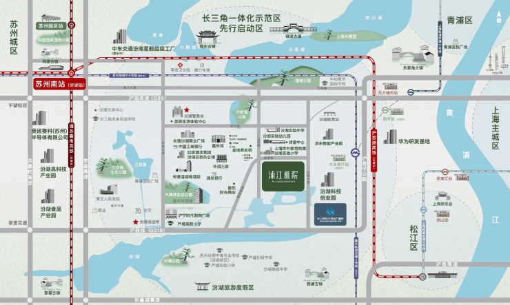 高铁:距苏州南站(汾湖站)5公里,沪苏湖高铁通车后直达上海虹桥