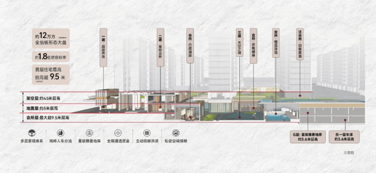 地上层:9.5米架空层,首层无遮挡,阳光直射,像住在公园里