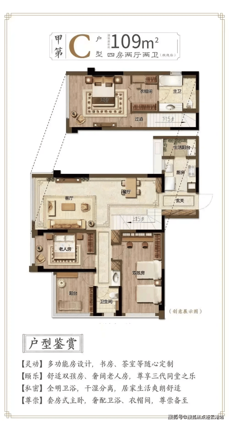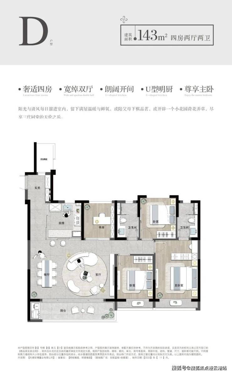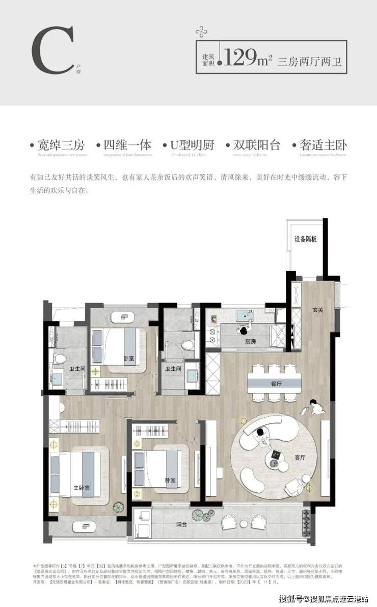 129㎡三居/143㎡四居:单价20000-21500元/㎡,总价260-307万/套(143㎡户型含270°观景阳台)