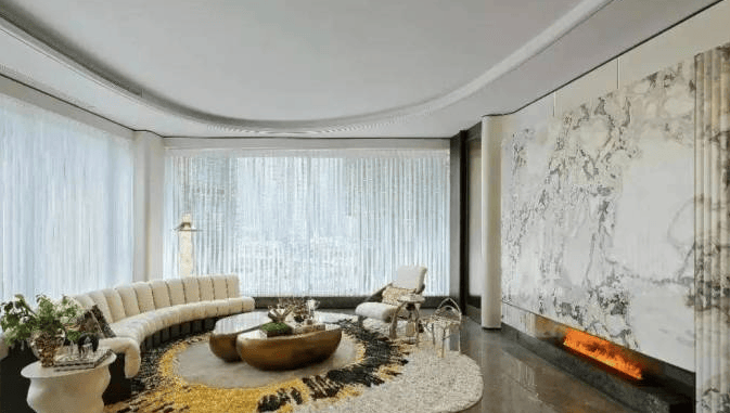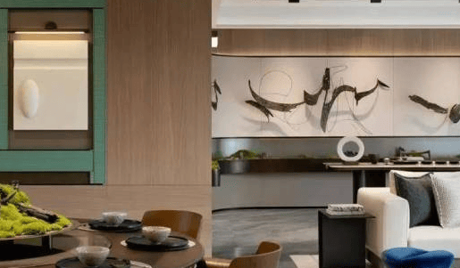 最后是精奢于心的优雅空间,例如由琚宾设计的杭州首个宋韵作品「SONG370」,提取经典名画《西湖全景图》中的丹青意蕴,运用风景开阖、空间对比等传统设计手法,从青玉横幅背景墙到金缕编织墙面,从自然奢石到苔藓微山水,千百次挑选材质和精工打磨,为杭州带来一处奥体之上的江南庭院。