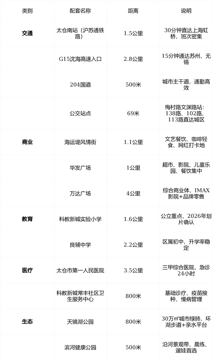 🚇 四、周边配套一览表(步行/车程)