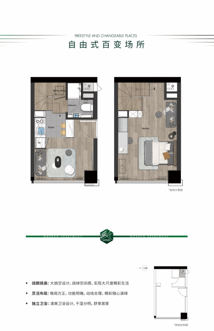 在丽格·M5公寓,你可以根据自己喜好任意打造摄影、直播、服装、美甲、设计等工作室…无论是自主创业还是出租开工作室,上下双层的功能区都能自由切换组合,容纳年轻人的梦想和生活,成就迸发灵感和创意的可能性!