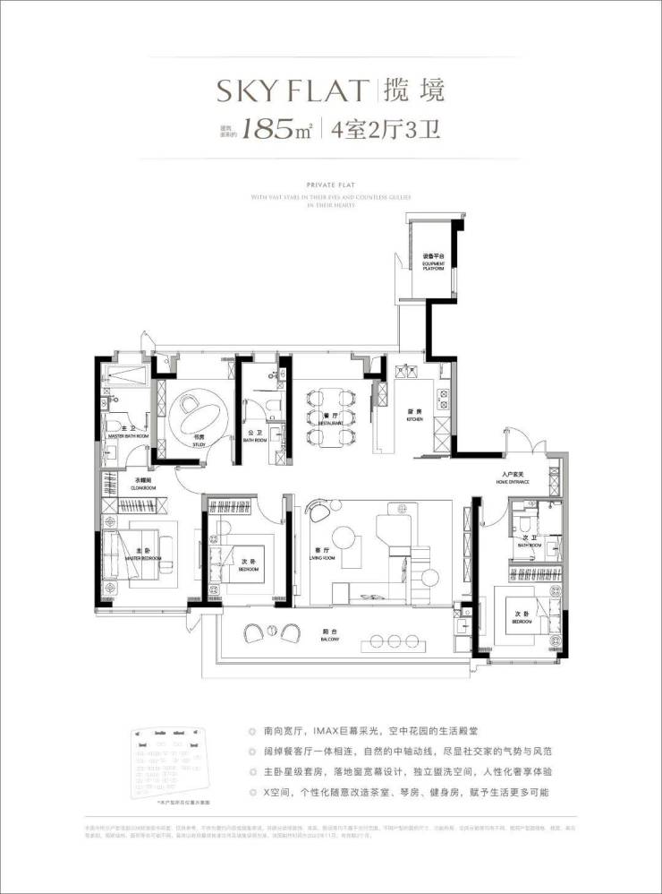 高层总高:21-24层的大平层,得房率76-82%,架空层4.5米,其他大平层层高3.15