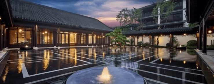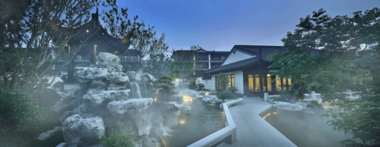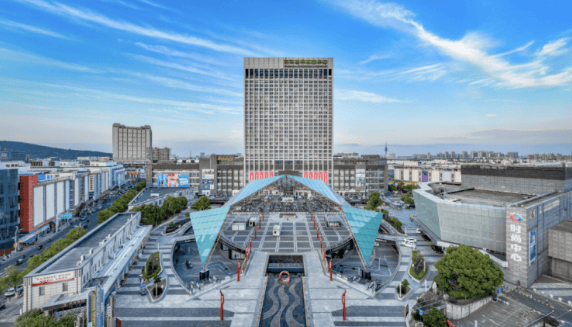 开发商常熟服装城集团资产总额61亿,年交易额超1600亿元,项目采用粉墙黛瓦的中式立面,多层飞檐设计彰显江南特色