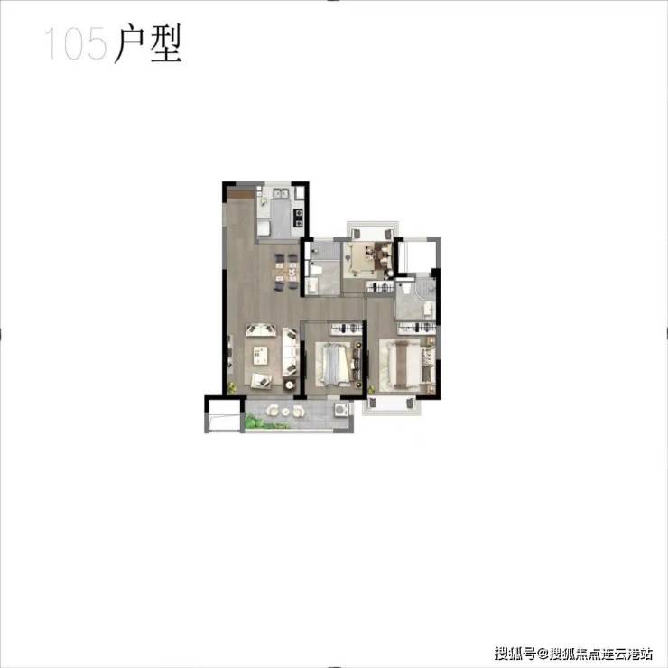 105㎡三居:单价约13000-16500元/㎡,总价130-172万/套(三开间朝南,得房率较高)