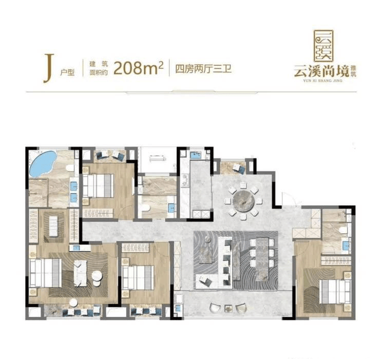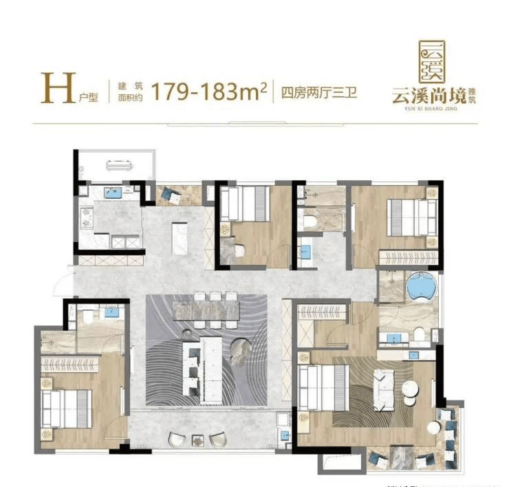 建面179-208㎡奢阔四居300-380万中西双厨、双套房设计,层高3.15米,近15.7米超大面宽