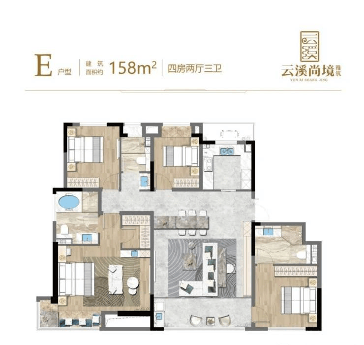 建面137-146㎡四居180-220万客餐厅面宽5.7米,主卧套间设计,适合改善型家庭