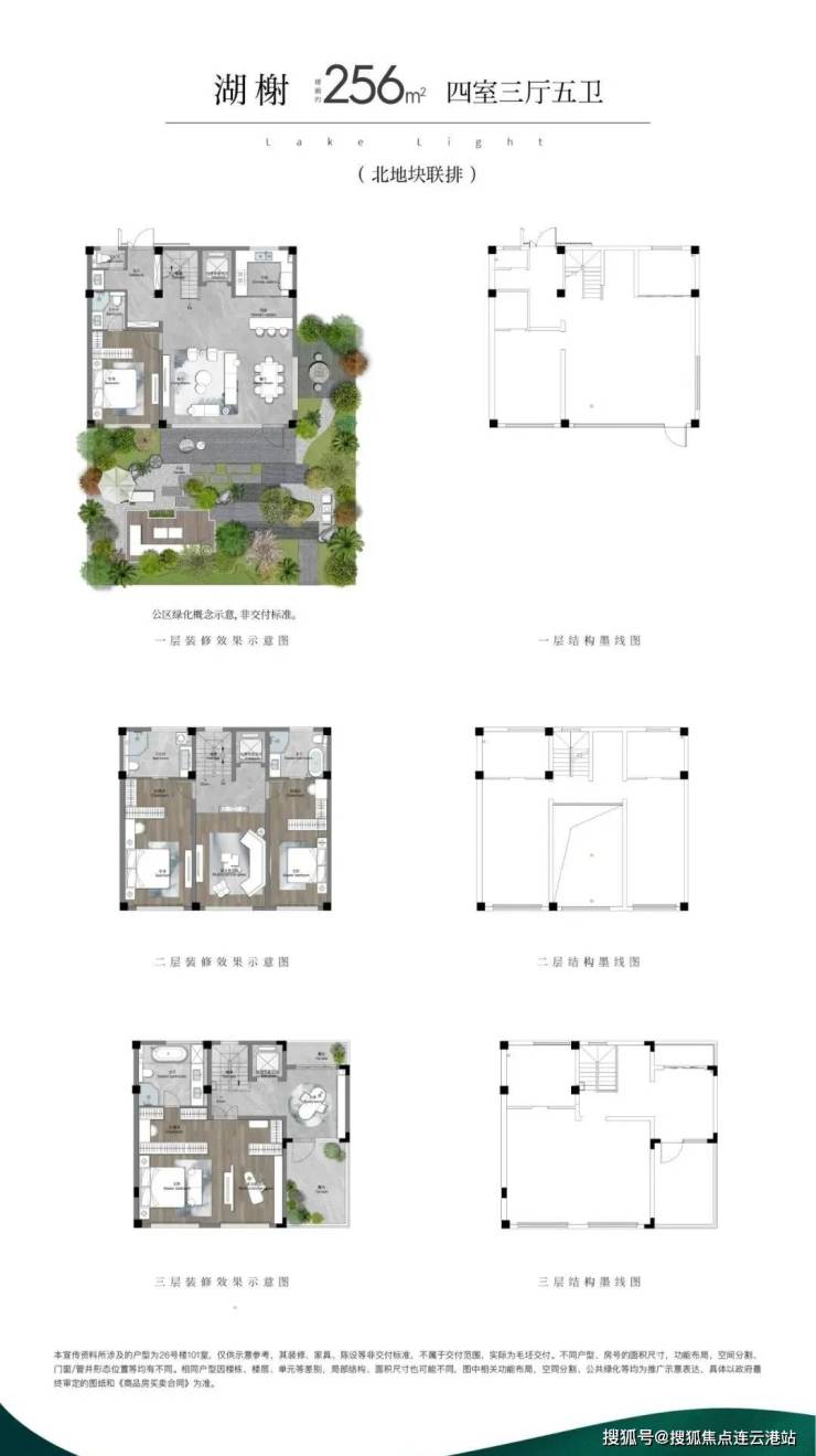 (1)联排:打造约246m²、约256m²(边户)、约280m²三个户型面积,以迭代的联排作品,致敬真别墅的回归