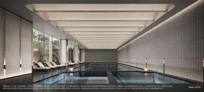 约1300m²高奢观瀑泳池会所:将轻氧健身、律动瑜伽、恒温泳池、沉浸书吧、高奢会客等功能区进行配置,全力打造圈层社交的专属私域。
